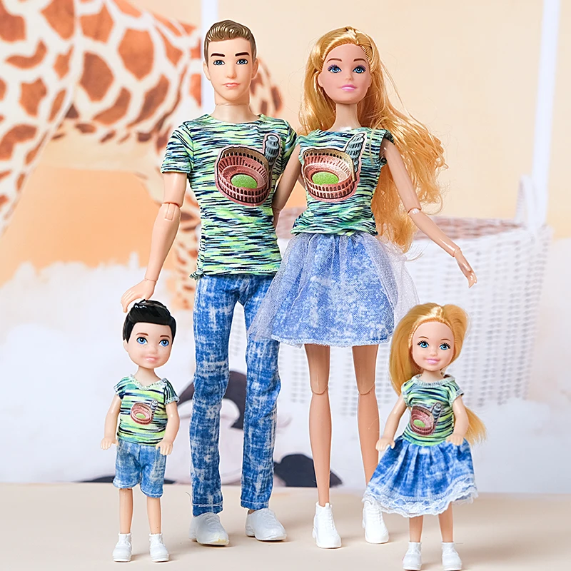 30cm Family Doll Movable Body Mom Dad Ken and Kids 4 Dolls Set 1/6 Barbies Doll Toy for Child Kids Education Birthday Gift
