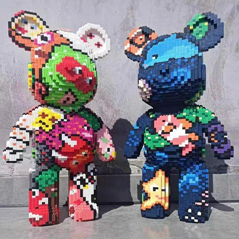 Cartoon Mini Love Violent Bear Bearbrick Colour Model with Light Building Block Micro Diamond Bricks Kids Toys Birthday Gift Set