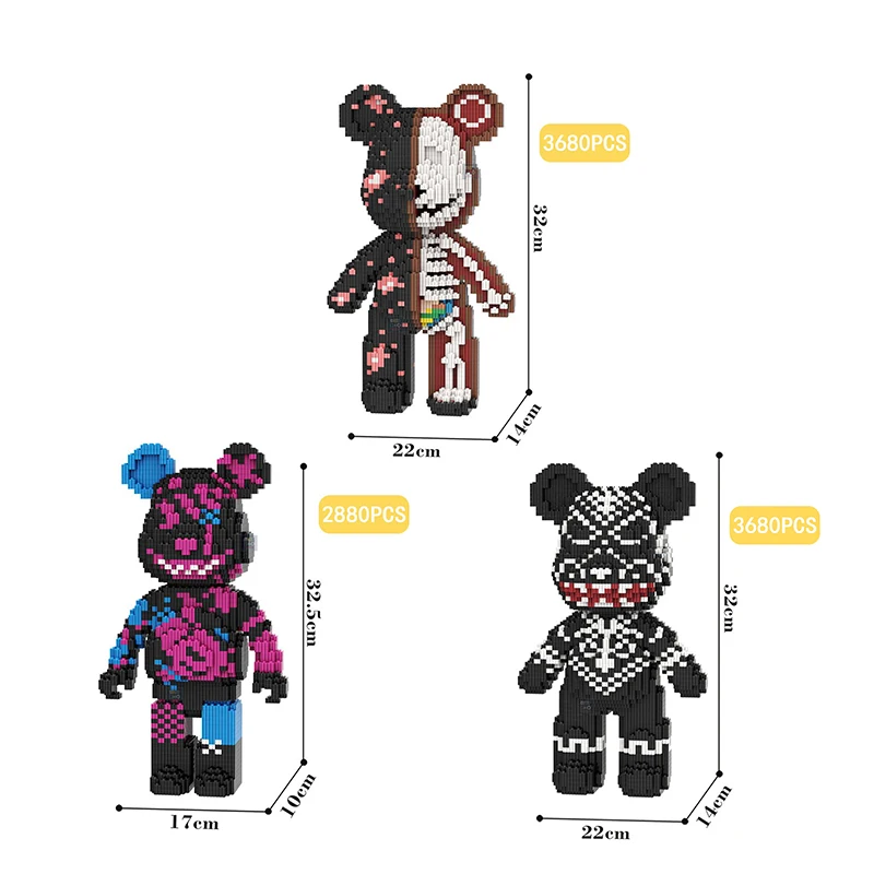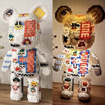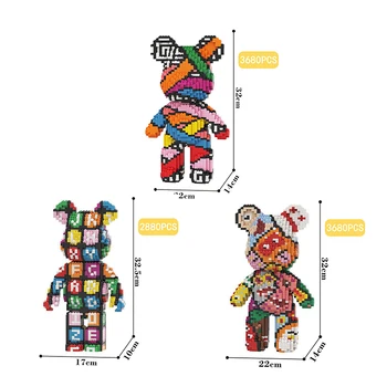 Item name: Cartoon Mini Love Violent Bear Bearbrick Model with Light Building Block Micro Diamond Bricks Kids Toys Christmas Birthday Gift