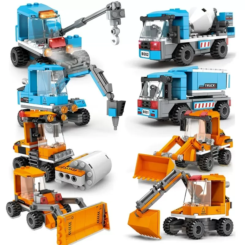 City Building Blocks Concrete Mixer Excavator Crane Loader Engineering Trucks Model Sets Dolls DIY Bricks Figure Kids Toys Gift