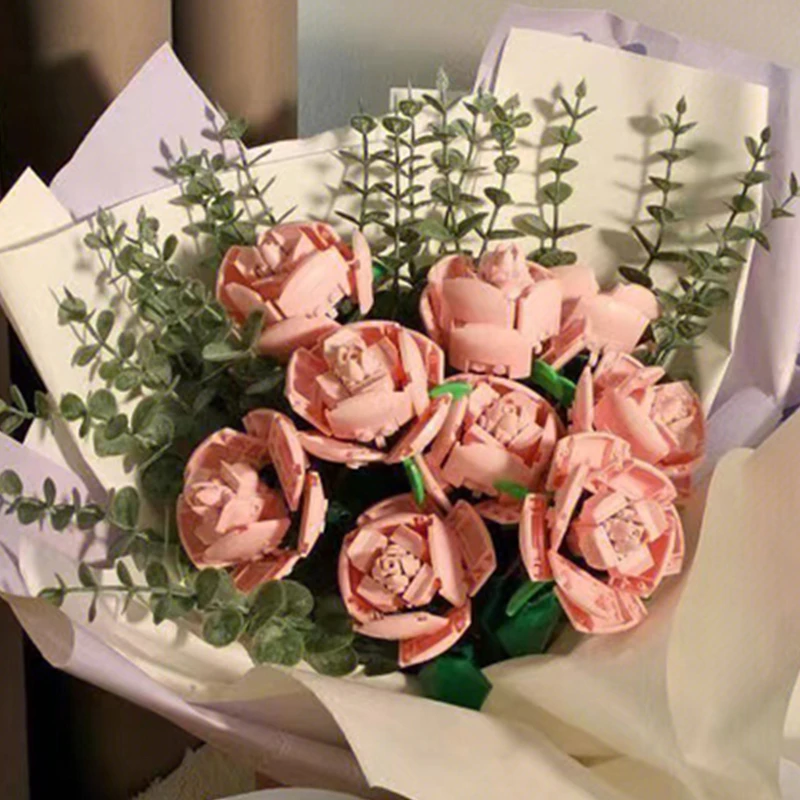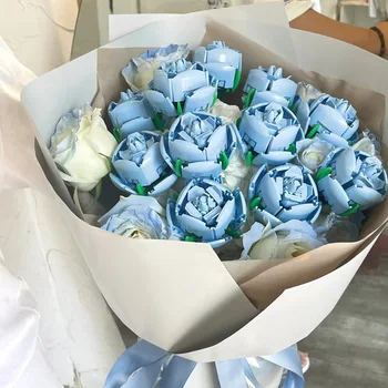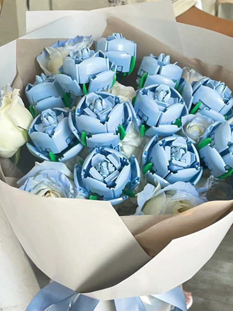 DIY Blue Roses Plants Peace and Hope Valentine’s Day Gardens Building Blocks Classic Model Bricks Kids Sets Kits Toys
