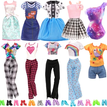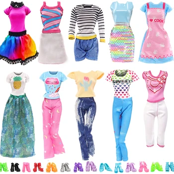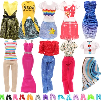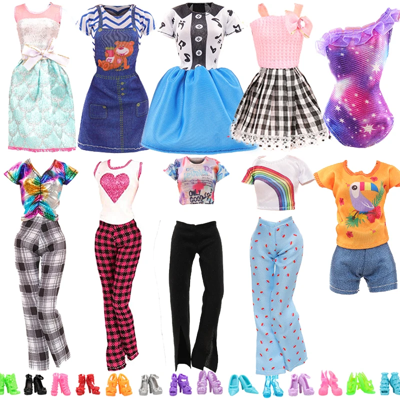 Fashion Handmade Style 6 Pieces Doll Accessories= Random 3 Doll Clothes for Barbie + 3 Pairs of Shoes Kids Toys Gift