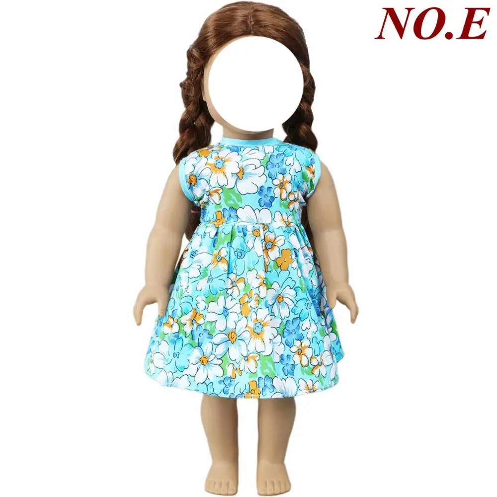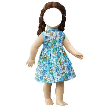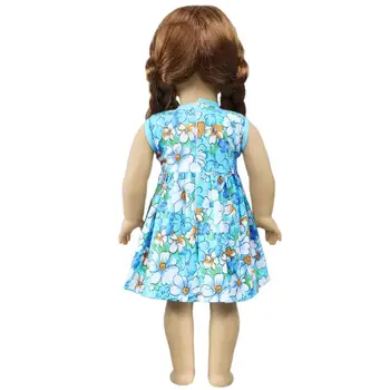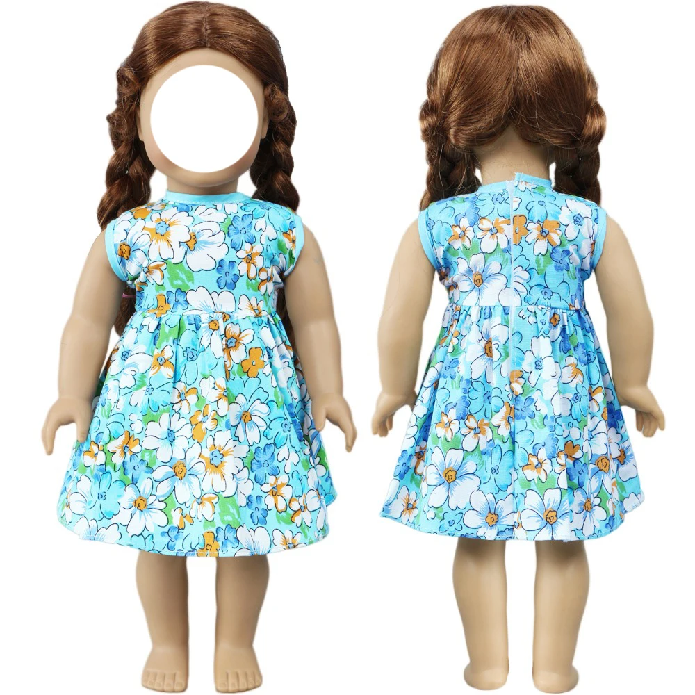 Handmade Fashion Doll Dress for 45 cm Girl Doll 18” Doll Blue Floral Skirt Daily Casual Wear Clothes Accessories Kids Toys