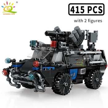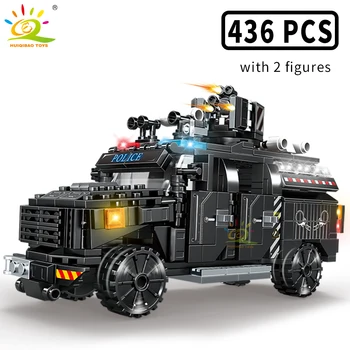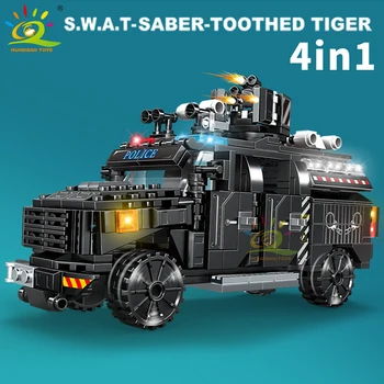 HUIQIBAO 4in1 Swat Police Series Building Blocks with Policeman Bricks Truck Ship Car City Construction Toys for Children