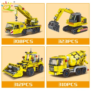 HUIQIBAO TOYS MOC Engineering Truck Building Blocks City Construction Crane Bulldozer Car Bricks Set Children Kids Toys for Boy