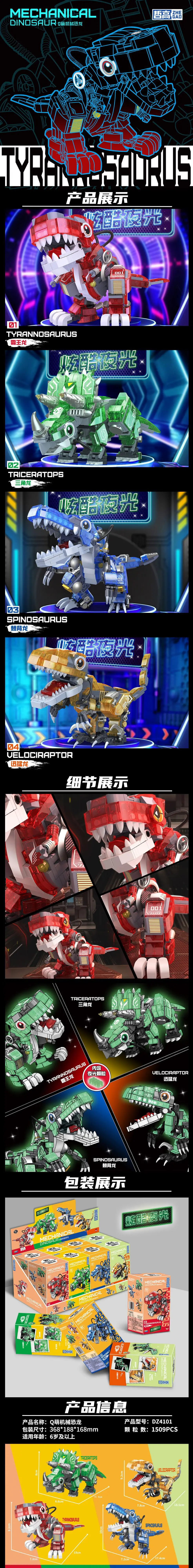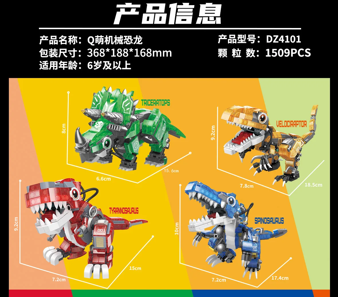 Noctilucent dinosaur building blocks Tyrannosaurus rex Triceratops Spinosaurus Velociraptor Model Kids toys Halloween Christmas
