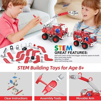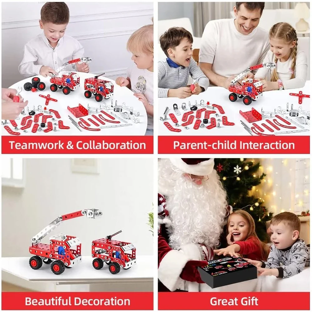 Stem Building Toys For Boys Age 8+,Erector Set Fire Trucks Series Model Kit,Assembly Toys For Kids,Metal Building Educational Toys Set Gifts For Model, 4 Variable Multi Shape Fire Fighting Car(121PCS)